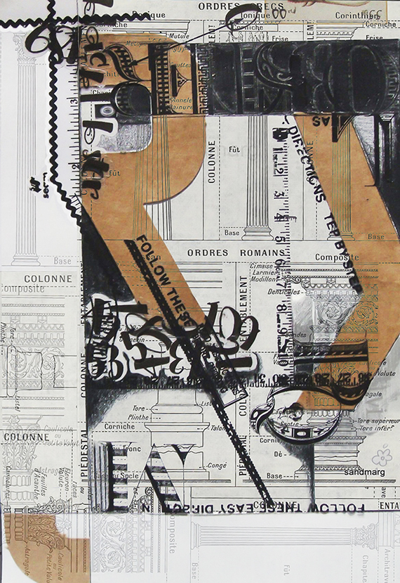 From Science vs Romance Series: Idiosync, 2016, graphite, ink, collage on paper, 4 x 5.5".